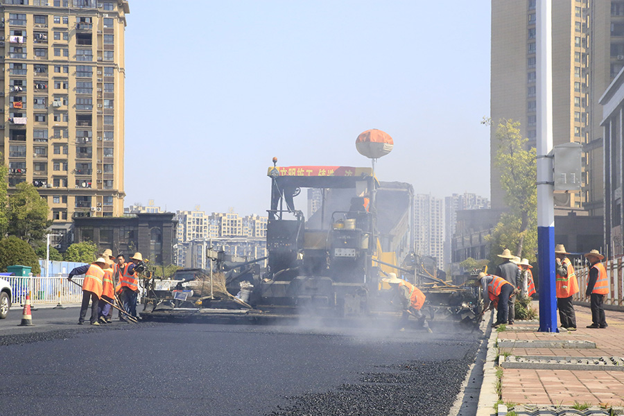 2019年8月,宜春經開區(qū)S311路面攤鋪現場,工友們輔助路面兩側的分料、補窩等作業(yè)